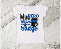 This My hero wears a badge girls shirt would be the perfect addition to your little girls wardrobe.