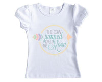 This shirt features the nursery rhyme - the cow jumped over the moon