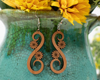 Sunflower Swirls Cherry Wood Dangle Earrings