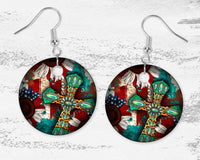 Earrings are approximately 2.5" long (including hardware) and 1.5" wide.