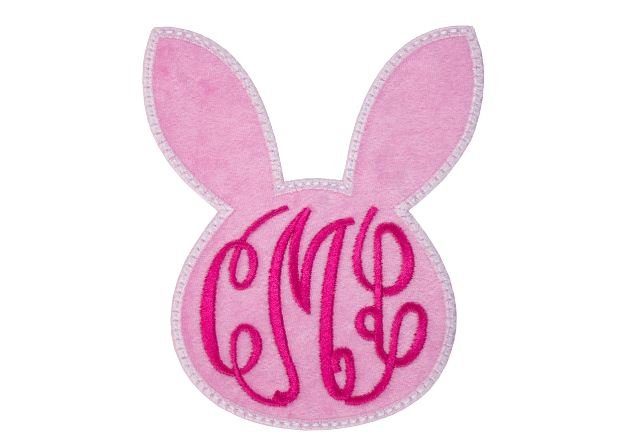 Your little girl will look absolutely adorable when she sports an outfit, bag, or accessory accented with one of these monogrammed Easter bunny head patches. This monogrammed patch is made from a pink fabric or another fabric of your choice and can be used for your next project in either an iron on or sew on patch.
