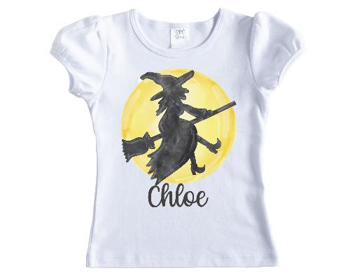 This Witch Riding Broom with Full Moon shirt would be the perfect addition to your little girl's wardrobe.