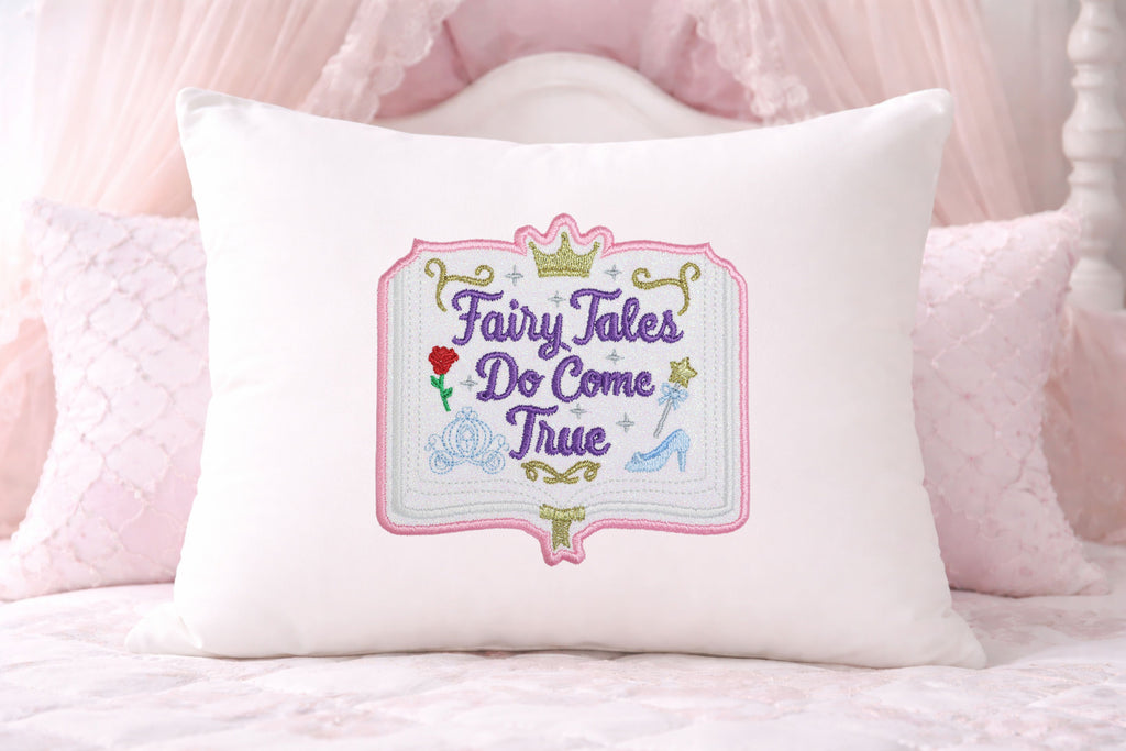 Bring a little magic to outfits and accessories with this Fairy Tales Do Come True embroidered patch. Designed like an open storybook with crown, wand, slipper, and rose details, this patch is perfect for princess-inspired projects, dress up outfits, jackets, backpacks, and special gifts.