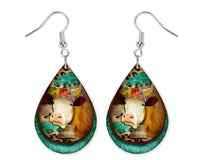 Cow with Teal and Leopard Teardrop Earrings and Necklace Set