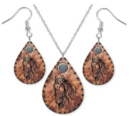 Horse Head Sketch Teardrop Earrings and Necklace Set