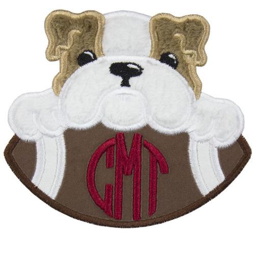 Bulldog Monogram Football Patch - Sew Lucky Embroidery