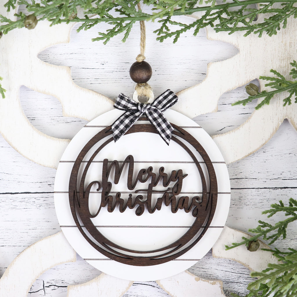 Merry Christmas Rustic Wood Christmas Tree Ornament